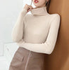A beige turtleneck, pure elegance.